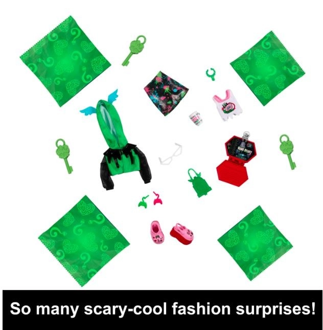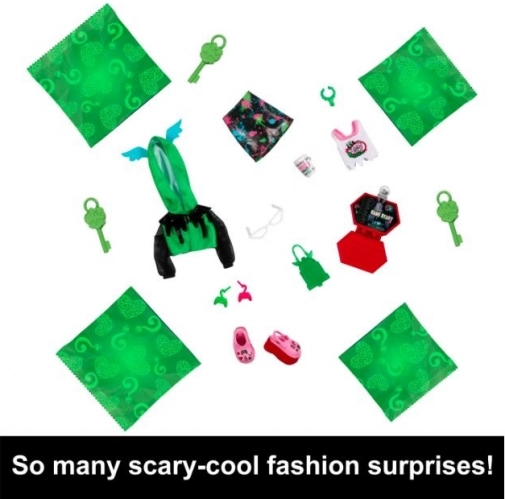 Skulltimate Secrets-serien er tilbage i neonstil! Lås Ghoullia Yelps’ skab op, afslør Color Reveal-hemmelighederne, og kast dig ud i en sjov unboxing fyldt med modedele og uhyggeligt smarte accessories. Sluk lyset og lad tre accessories gløde i mørke – dine nattehistorier får en ny dimension.