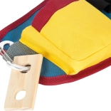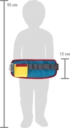 Tekstilbælte med robust spænde og D-ring tilpasses nemt barnets krop. Løkker og lomme holder værktøjerne sikkert på plads selv under bevægelse.