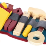 Værktøjsbæltet Workshop forvandler hver leg til et lærerigt eventyr. Takket være den solide konstruktion og den kvalitetsrige kombination af træ, tekstil og metal tåler det daglig leg. Børn har hammer, skruetrækker, nøgle, tang og tommestok altid ved hånden – alt opbevaret sikkert i bæltets løkker og lommer.