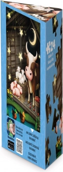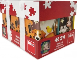 Dino Puslespil Dyrene på gården giver børn glæde ikke kun ved at lægge puslespil, men også ved eventyrfortællinger takket være Readmio-appen. Når billedet på 24 brikker er lagt, kan I via en QR-kode hente et eventyr, som I kan lytte til eller selv læse op med lyd-effekter.