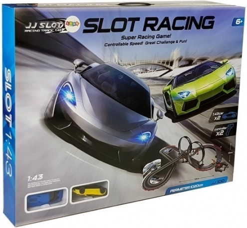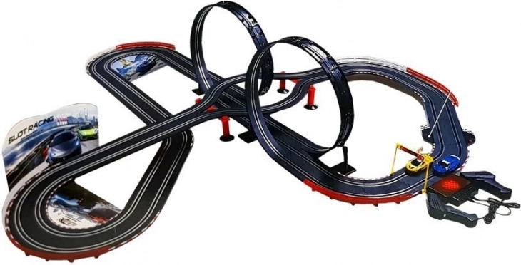 Denne enorme slotcar-racerbane vil begejstre alle fartentusiaster. Takket være to loops, dynamisk layout og skarpe sving er kørslen altid spændende. Bilerne i skala 1:43 har forreste LED-lygter, så løbene er fantastiske selv i dårlig belysning.