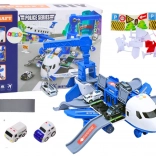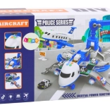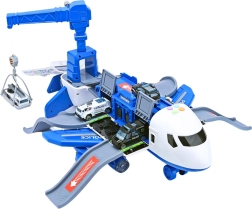 Når det foldes ud, forvandles flyet til en mobil politistation med ramper, opbevaringsrum og en platform til at “affyre” en lille bil for et lynhurtigt indgreb. Sættet indeholder 3 politibiler, en drejelig 360° kran med drejehjul samt et sæt skilte, kegler og andre accessories til at bygge din egen by og vejbaner.