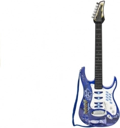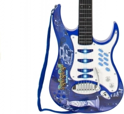 Denne blå elektriske børneguitar er skabt til små rockstjerner! Lavet af kvalitetsplast, den tilbyder et realistisk design med metalstrenge og nem håndtering takket være den medfølgende rem.