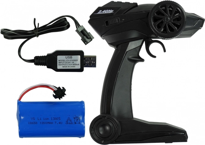 Ergonomisk ratcontroller på 2,4 GHz-frekvens sikrer hurtige reaktioner og mulighed for at køre med flere modeller samtidig uden gensidig signalforstyrrelse.