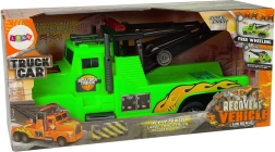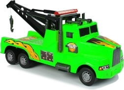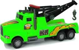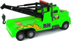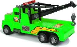 Denne robuste plast-fejebladslastbil bliver stjernen i enhver børnegarage. Realistiske detaljer, grøn farve med flammeklistermærker og en funktionel kran med spil stimulerer fantasi og selvstændig leg. Takket være det udtrækkelige reb med håndsving og den solide krog “bugserer” den nemt andet legetøj til et sikkert sted.