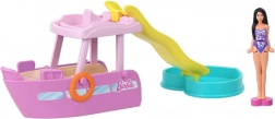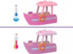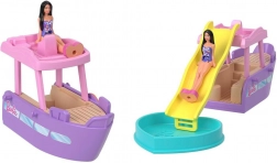 Dette farverige legesæt giver børn fra 4 år mini-eventyr på vandet lige i hånden. Båden i rosa-lilla nuancer har øverste dæk med siddepladser, kabine og kan foldes ud til en legescene med klar gul rutsjebane og turkis hjerteformet bassin. Med følger en minidukke i badetøj, klar til feriecruise.