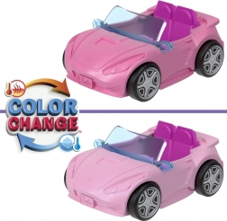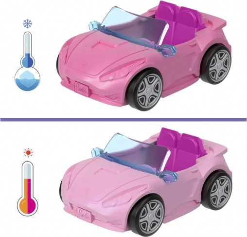 Efter nedsænkning i koldt vand skifter bilen farve, og i varmt vand skifter den tilbage – effekten kan gentages igen og igen. Takket være størrelsen er sættet let at tage med og er en fantastisk gave og et perfekt supplement til samlingen. Kombinér med andre Mini Barbie Land-sæt og byg din egen mini-by.