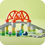LEGO DUPLO Jernbanebro og skinner giver børn et udvidelsessæt til deres interaktive togbane. Dette kreative legetøj gør det muligt at tilføje en løftebro og forlænge ruten med otte lige skinner, som kan forbindes med enhver LEGO DUPLO togbane. Børn fra to år kan lege lokomotivfører, hvilket understøtter udviklingen af øje-hånd-koordination.