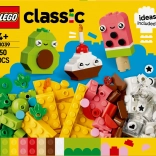 Oplev en verden fuld af farver og former med LEGO Classic Kreative lækkerier. Dette sæt indeholder masser af farverige og interessante klodser og specialelementer, inklusive øjne, munde og forskellige dekorationer, som giver børn mulighed for at bygge fire søde godbidder: en muffin, en is, en avocado og en taco. Den kreative leg fortsætter, når børnene blander klodserne og ombygger modellerne til en kage med krymmel, bubble tea, en pære og en panini. Når børnene bliver mere trygge ved at bygge, kan de eksperimentere med former og farver efter enkle, intuitive vejledninger og skabe nye lækkerier som grøn is, en juicekarton, et stykke vandmelon, en bar og en stor sandwich.