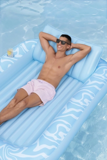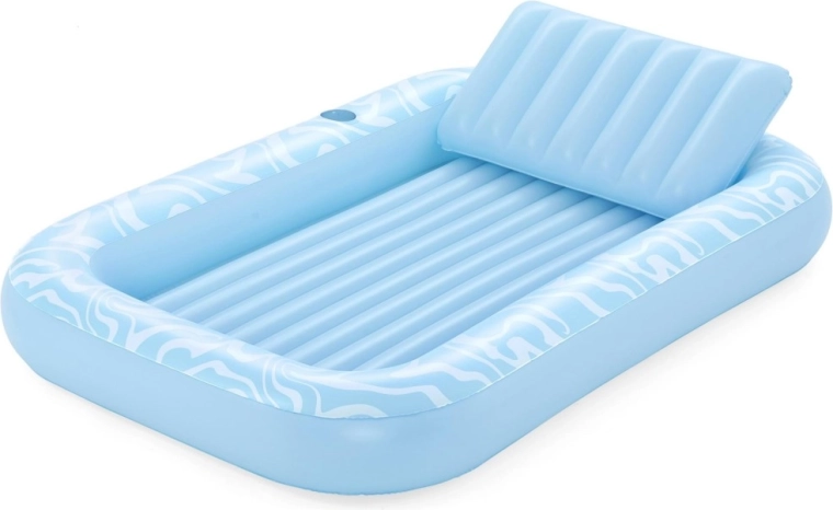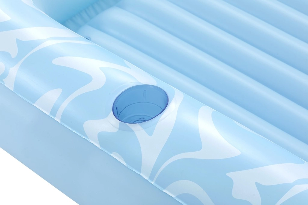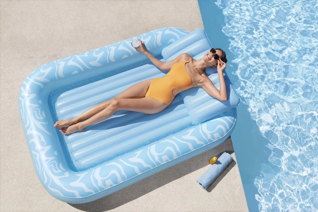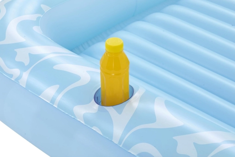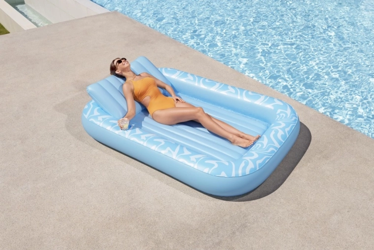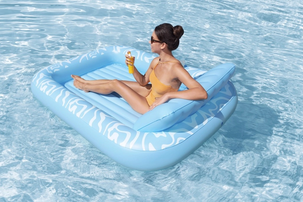 Oppustelig madras Sun Kiss med ryglæn er det ideelle valg til sommerhygge ved vandet. Den luksuriøse konstruktion og praktiske detaljer sikrer behagelig solbadning og sjov både på vandet og på stranden.