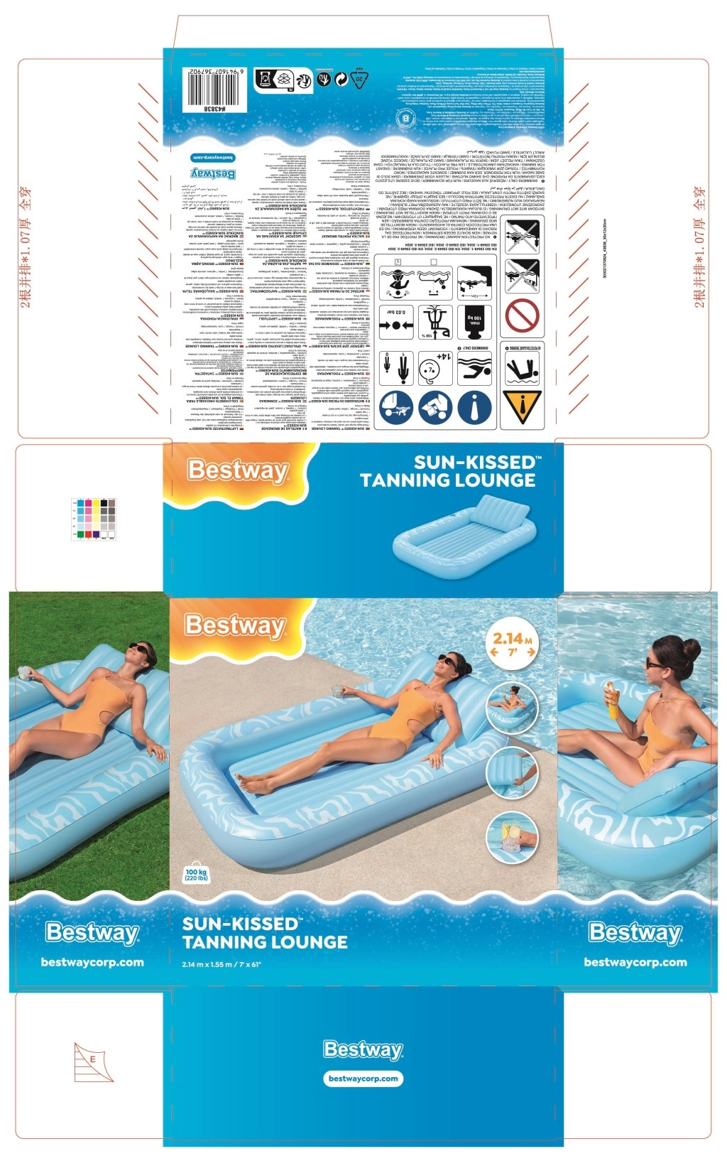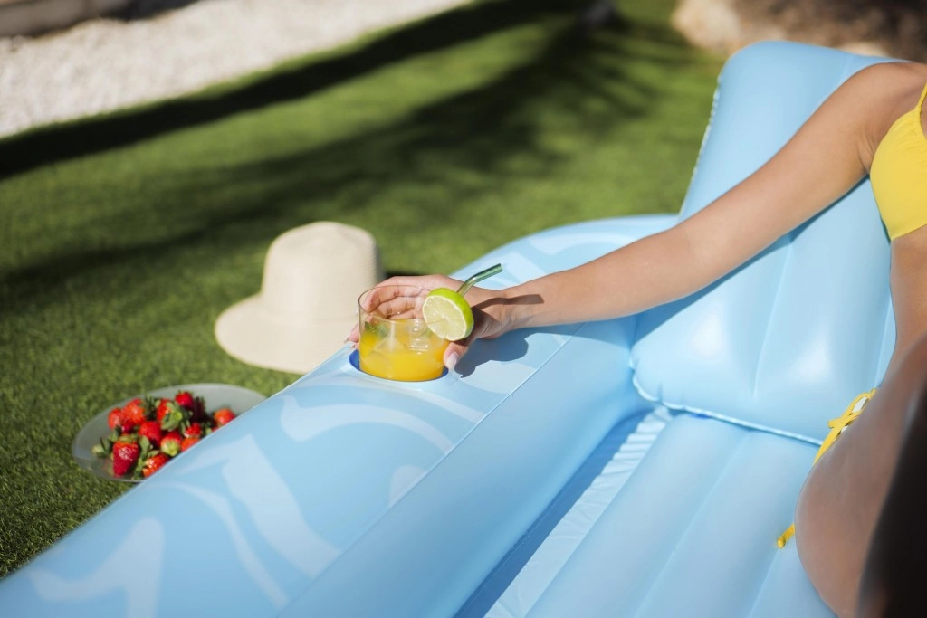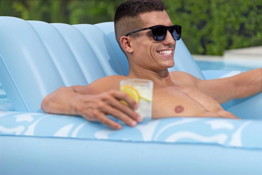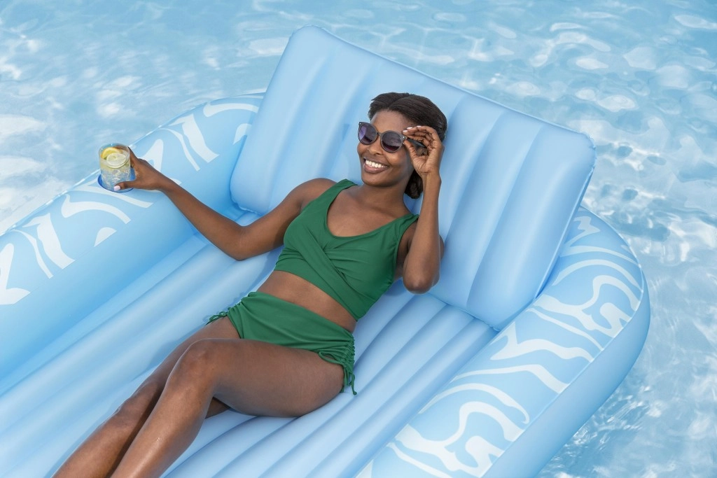 Oppustelig madras Sun Kiss med ryglæn er det ideelle valg til sommerhygge ved vandet. Den luksuriøse konstruktion og praktiske detaljer sikrer behagelig solbadning og sjov både på vandet og på stranden.