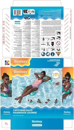 Nyd sommerens afslapning med en komfortabel vandhængekøje, der kan bruges som liggestol, stol, hængekøje og saddelsæde. Takket være det stærke CoolDown2122-net og de oppustelige støtter af robust vinyl giver den stabil støtte, behagelig afkøling og maksimal komfort. Color Shield2122-beskyttelseslaget holder klare farver uden afsmitning på huden, bæreevne op til 100 kg og mål på 140 d 87 cm sikrer komfort for alle.