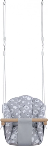 Børnegynge Fåret: komfort og sikkerhed i træ og bomuld. Justerbare reb, bæreevne 60 kg, sødt design. Ideel til børn fra 6 måneder.