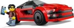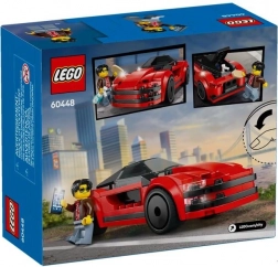 - Rød sportsvogn til at bygge, minifigur af chauffør, tilbehør (telefon, sprayflaske, svamp)