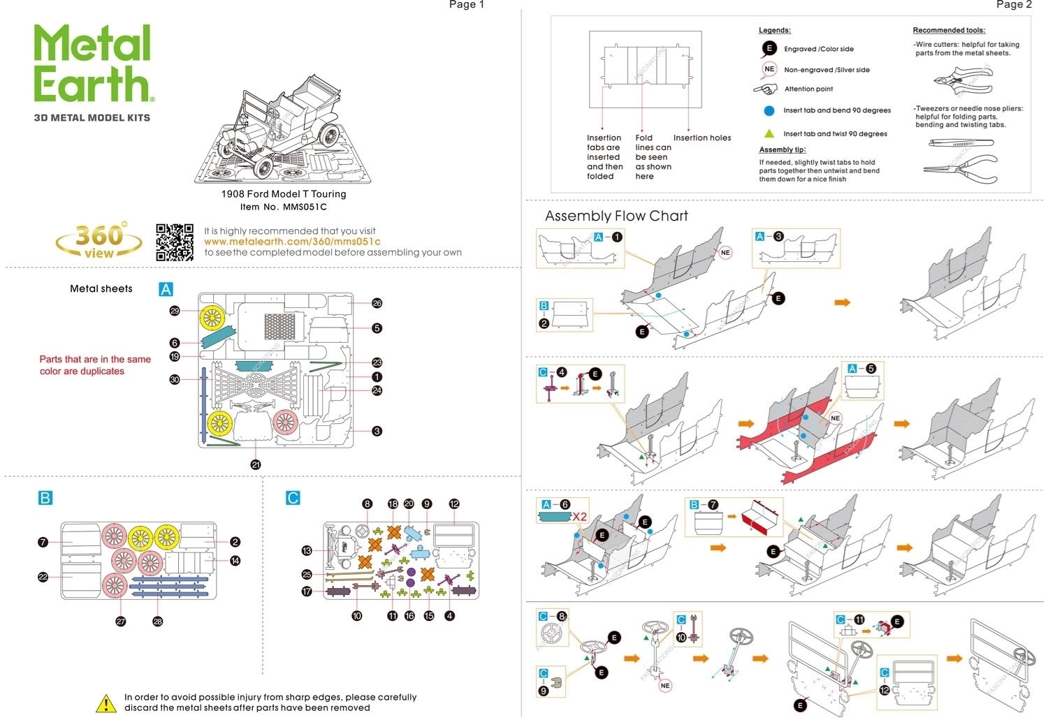 Samlingen foregår uden lim – de enkelte dele forbindes med tappe og huller. For nem håndtering anbefales små skævbider/tænger og tynde fladtænger (ikke inkluderet). Pakken indeholder 2 stålplader og en overskuelig vejledning, så du trin for trin opnår et imponerende resultat.