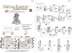 Byggesættet indeholder 2 stålplader (21 × 11 cm) og en detaljeret illustreret manual. De enkelte dele trykkes ud af pladerne og forbindes i låse ved hjælp af bøjede tunger – altså uden lim. For mere komfortabelt arbejde anbefales små skævetænger/sakse og fine fladtænger (medfølger ikke). Den samlede model måler cirka 9 × 4,5 × 3 cm og er egnet fra 14 år.