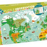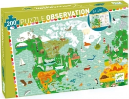 Opdag verden med DJECOs observationspuslespil, der kombinerer puslespil og opdagelse. Børn træner deres iagttagelsesevne, geografiske forståelse og ordforråd, mens de lægger. Inkluderer en brochure på 10 sprog til yderligere udforskning. 200 brikker, motiver af seværdigheder, dyr og natur, færdigt mål 61 × 38 cm.