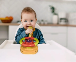 Ved at trykke på knapperne vækkes rattet til live med lys og lyde, som motiverer barnet til interaktion og udvikler sanserne.