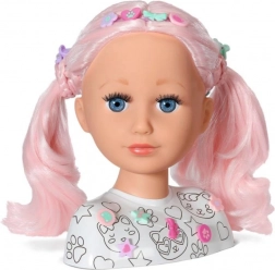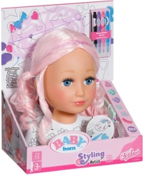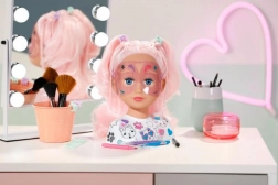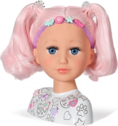 Opdag uendelige muligheder for kreativ leg med BABY BORN frisørhoved på 22 cm. Takket være lange pink nylonhår af høj kvalitet, farvetuscher, skabelon og et sæt snap-pynt får børn timer af kreativ underholdning – fra frisering og makeup til at dekorere T-shirt og hårbøjle.