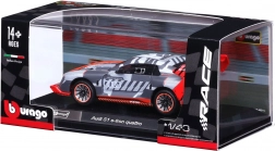 Saml og udstil den ikoniske bil i skala 1:43. Metalmodellen BBURAGO AUDI S1 e-tron quattro byder på detaljeret udførelse, sportslige dekaler, frit drejelige hjul og en dekorativ boks til sikker opbevaring og gaveindpakning.