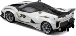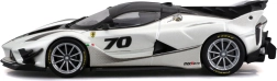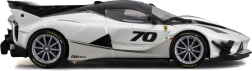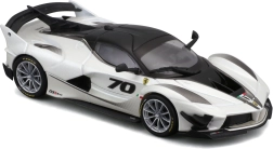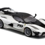 Den detaljerede model af Ferrari FXX-K EVO 2017 leverer realistiske proportioner, skarpe karrosserilinjer og raceelementer som stor bagvinge, diffusor og frontsplittere. Den hvid-sorte udførelse med nummer 70 understreger det autentiske look af banespecialet.