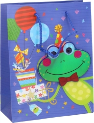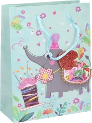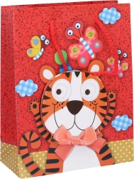 Denne gavepose til børn er et glimrende valg, når du vil pakke en mindre gave hurtigt og pænt uden klipning og limning. Takket være målene 23 × 18 × 8 cm passer den til bøger, småt legetøj eller kosmetiksæt. De glade dyremotiver fremkalder et smil og giver gaven et legende udtryk.
