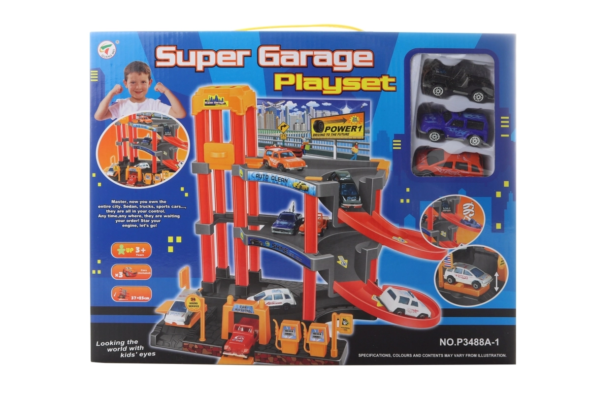 Denne plastgarage er en ideel gave til små bilelskere. Den tilbyder plads til parkering, enkel betjening og understøtter udvikling af finmotorik samt kreativ leg. Med de tre medfølgende biler kan børnene begynde at lege med det samme efter udpakning.