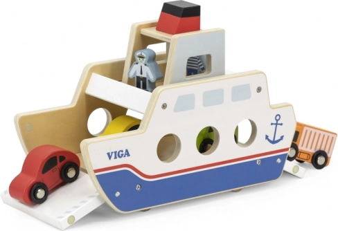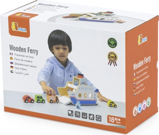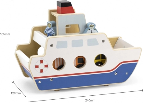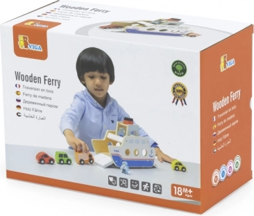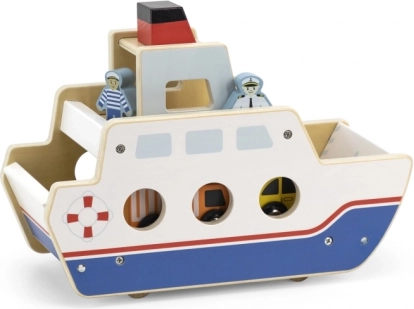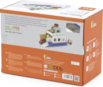 Denne kvalitets træfærge vil glæde alle små bil- og bådelskere. Båden kører på hjul, så den er nem at flytte, og har klapramper i begge ender, så bilerne nemt kan køre ombord og i land. Den robuste udførelse og de glatte kanter er ideelle til børn fra 18 måneder.