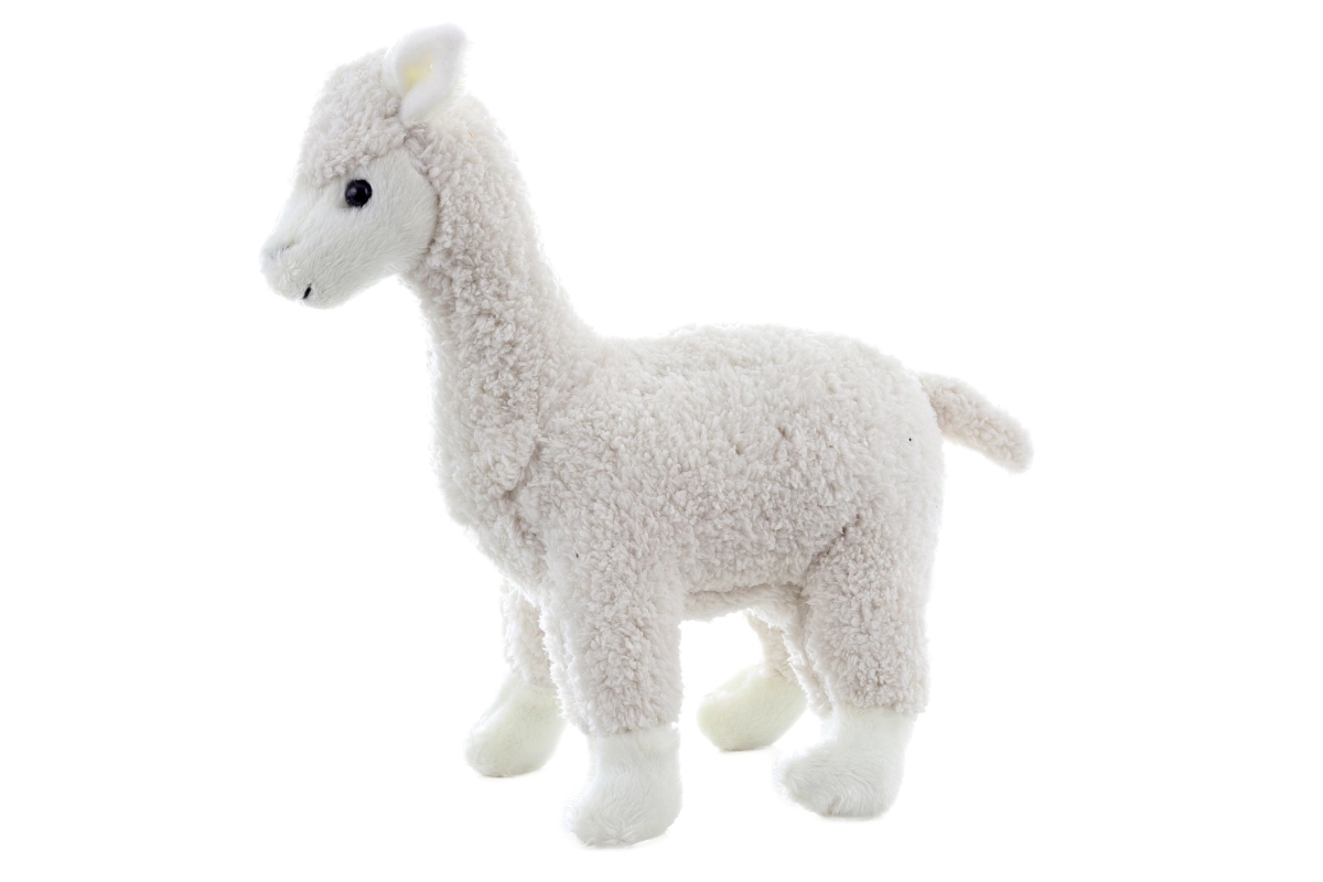 Plyslegetøj formet som en alpaka, lavet af bløde og behagelige materialer, ideelt til små børn og babyer.