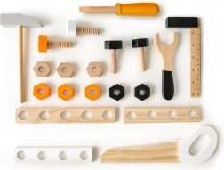 Med ECOTOYS træværksted vil dit barn føle sig som en rigtig mester. Sættet indeholder 38 dele, der bringer glæde ved at skabe og arbejde i eget tempo.