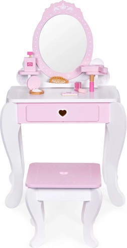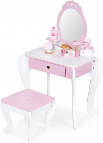 Sminkebordet er udstyret med realistisk tilbehør og et dekorativt stort spejl, der opfylder drømmen hos enhver lille makeupartist. Gennem legen udvikler barnet sine finmotoriske færdigheder og fantasi og får grundlæggende kunnen i at lægge makeup.