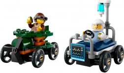 Dette legesyge sæt byder på et utraditionelt race, der straks trækker børn ind i action. De enkle modeller bygges i få trin, så de små byggere hurtigt kan komme i gang med at lege. Med appen LEGO Builder kan modellerne zoomes ind og roteres i 3D, fremskridtet kan følges, og flere sæt kan udforskes.