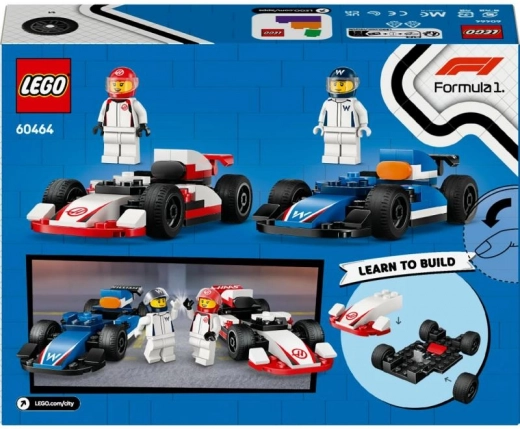 Oplev Formel 1 med to autentiske racerbiler fra WILLIAMS og HAAS. Sættet indeholder en startklods til nemt byggeri, så selv yngre børn hurtigt kan komme ud på deres første ture. Minifigur-piloterne kan sættes i cockpittet og straks køre ud til spændende løb og fortælle deres egne historier.