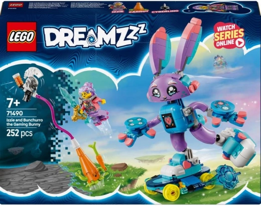 Oplev eventyr i drømmenes verden med LEGO DREAMZzz Izzie og gamer Bunchu. Børn kan bygge en ny version af kaninen Bunchu med skærm på maven, controller-handsker og sneakers og derefter vælge mellem to byggemåder. To spiltilstande, en meget bevægelig figur og en Izzie-minifigur understøtter kreativ leg og historiefortælling.