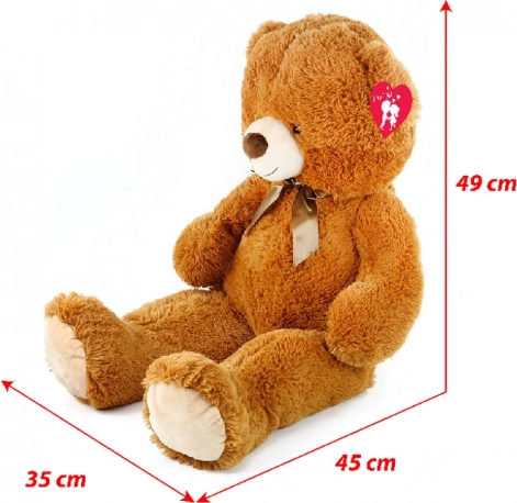 Designet i en mørkebrun nuance suppleres af et elegant satinbånd og et hjerteformet mærke, hvor du kan skrive en kort hilsen. Denne plysbamse er sikker fra fødslen og egner sig perfekt som en original gave til fødselsdage, jul eller bare for at glæde.