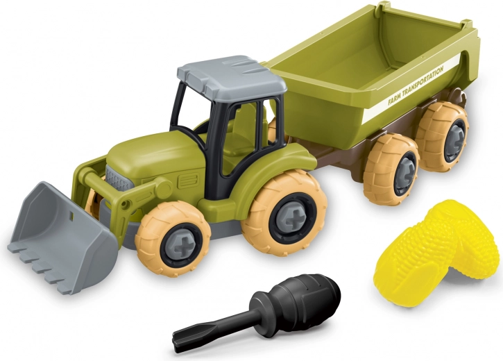 Giv små byggere glæde med et praktisk sæt, der kombinerer leg og læring. Traktoren med funktionsdygtig læsser og trailer kan let skilles ad i dele og samles igen takket være den medfølgende børneskruetrækker, hvilket hjælper børn med at forstå grundlæggende konstruktion og udvikler tålmodighed.