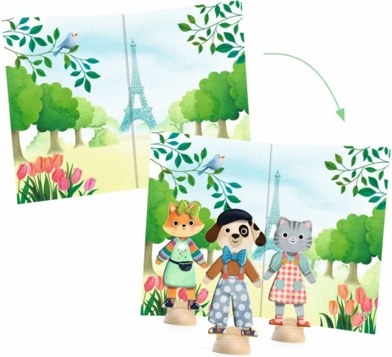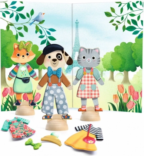 Tag til Paris med det kreative sæt fra Djeco, og lad børnene skabe deres egne historier. Der venter dem 3 træfigurer med standere, mere end 45 genanvendelige outfits og en billedvejledning til nem udforskning. Ideel collageaktivitet for børn 3–6 år, der udvikler fantasi og finmotorik.