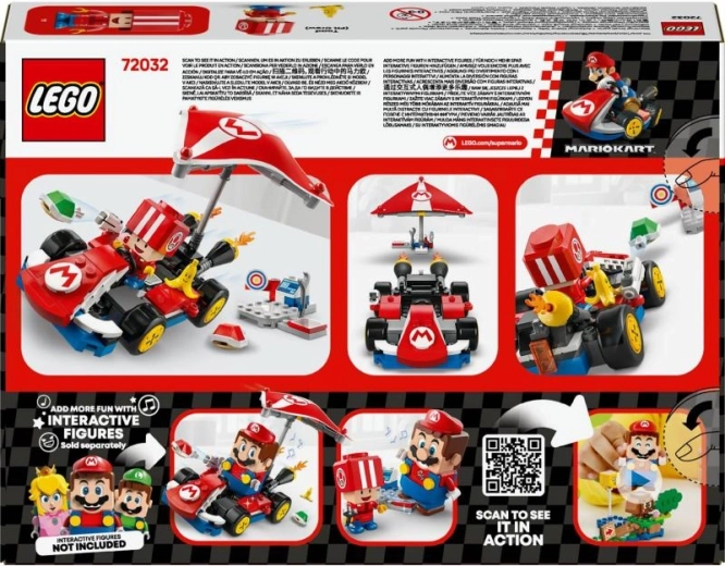 - Interaktiv oplevelse: placer LEGO Mario/Luigi/Peach (sælges separat) i gokarten og aktiver lyde og reaktioner ved actionelementet.