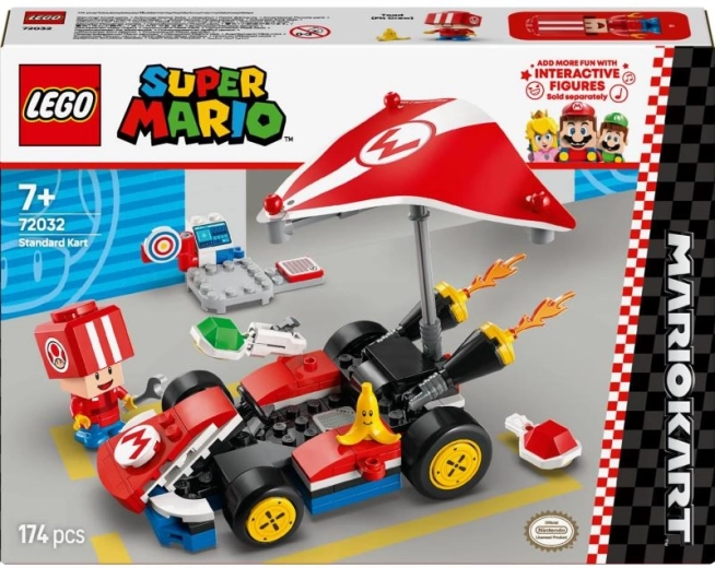 Gør dig klar til ræs, drift og svæveflyvning med LEGO Super Mario Mario Kart – Standard gokart. Sættet indeholder Toad fra pitcrewet, en aftagelig Super Glider, hjul til drift og affyring af skaller mod mål. Forbind med de interaktive figurer LEGO Mario, LEGO Luigi eller LEGO Peach for lyd- og visuelle effekter og endnu sjovere leg.