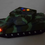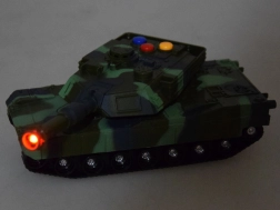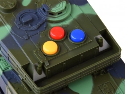 Tanken er lavet af plast af høj kvalitet, hvilket sikrer et realistisk udseende og holdbarhed. Den er udstyret med tre farvede knapper, som simulerer realistiske lyde som kørsel, klargøring og affyring af projektil samt sirene. Ved hvert tryk på en knap mærker du den autentiske stemning af kampaktion.