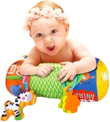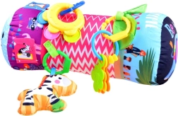 Rullen kan også bruges som stabilisator i autostol, i klapvogn eller hjemme. Glade farver og mønstre fanger barnets opmærksomhed og stimulerer dets visuelle, auditive og taktile sanser. Rullen måler 42 x 16 x 16 cm og er fremstillet af let vedligeholdelige materialer.