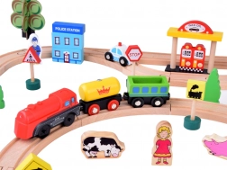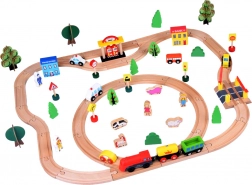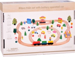 Træ togbane med lokomotiv er det ideelle legetøj til de mindste børn, der består af 80 dele og tilbyder en bane, der er 360 cm lang. Kvalitetsforarbejdning og farver tilpasset små børnehænder sikrer sjov og sikker leg.