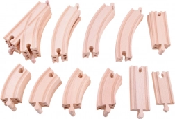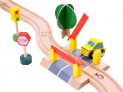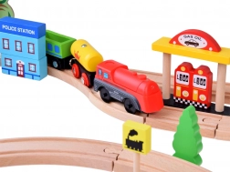 Dette fantastiske sæt af træ togbane er ideelt til at udvikle børns fantasi og finmotorik. Det indeholder: