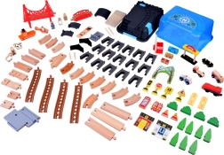 Forkæl dine børn med et sandt byggeparadis med denne træskinne. Det rigt udstyrede sæt indeholder alt, hvad der skal til for timers leg og kreativ udvikling. Alle elementer er fremstillet af robust træ, hvilket sikrer sikkerhed og lang levetid. Det giver en unik legeoplevelse, hvor børn kan skabe deres egne historier og eventyr.
