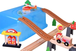 Et netværk af baner omkranser byen, hvilket gør det muligt for børn at planlægge ruter og skabe deres egne historier. Det bevægelige tog kan transportere passagerer og gods for realistiske legescenarier.