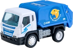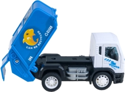 Legetøjet fremmer miljøbevidsthed takket være mærkater og detaljer som 'KAN GENBRUGES' på skraldevognen.