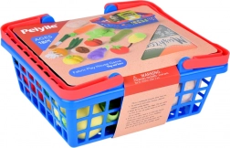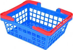 Den blå-røde plastkurv komplementerer legesættet perfekt og giver enkel opbevaring af alle legeelementer.
