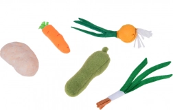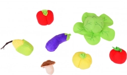 Sættet indeholder et bredt udvalg af grøntsager som gulerod, tomat, aubergine og mange flere, der fanger opmærksomheden med deres farver og former.