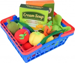 Leg med bløde grøntsager i kurv er en sjov og inspirerende måde for børn at fordybe sig i en verden af fantasishopping og sund madlavning.