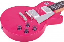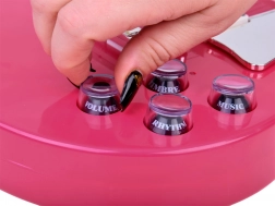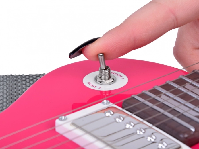 Denne elektriske børneguitar i rosa er designet til at ligne et rigtigt instrument og give børn en autentisk spilleoplevelse. Takket være plastkrop med metalstrenge og betjeningselementer får små rockere glæde af realistiske lyde og nem betjening.